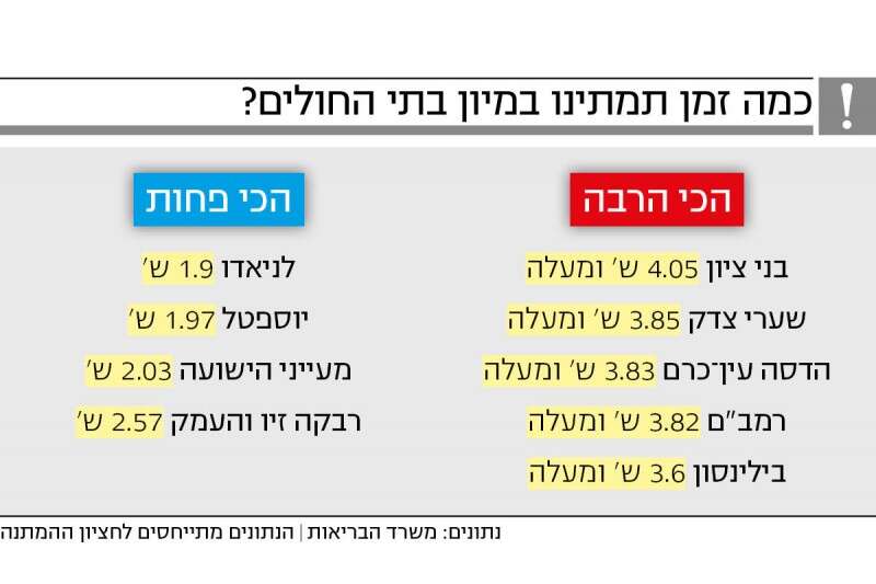 ביחס לשעות ההמתנה בחדרי המיון השונים: