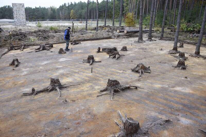 החפירה בסוביבור שחשפה את סימני הכלים המכניים שבהם השתמשו הגרמנים לחיסול המחנה. על סימנים אלה ניטעו עצים לטשטוש העדויות // צילום: רשות העתיקות