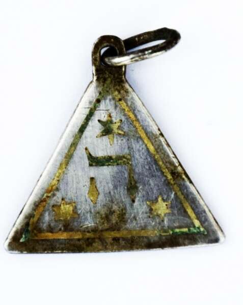 צידו השני של התליון, הנושא את הכתובת "מזל טוב" ומופיעה האות ה' כשהיא מוקפת במגני דוד // צילום: רשות העתיקות