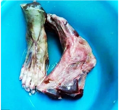 התמונה המזעזעת בה נראות כפות הרגליים החתוכות צולמה במטבח המסעדה המדוברת ועוררה סערה ברשתות החברתיות באיטליה.