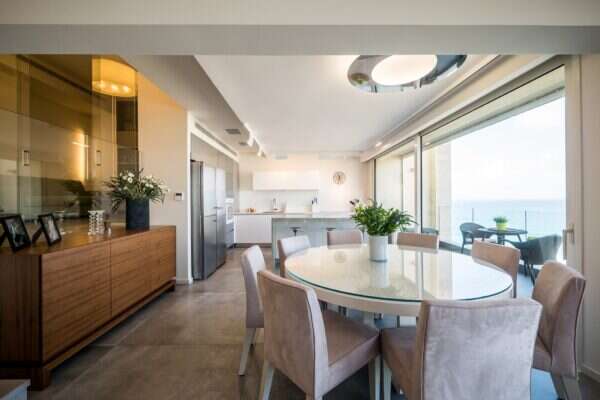 בפרוייקט הממוקם בסמוך לחופי הרצליה, ביקשו בעלי הבית לחבר בין שתי דירות ובכך ליצור מרחב מחיה רחב ידיים, מפנק ומואר. הדירות: האחת בשטח של 175 מ"ר והשניה משתרעת על פני 87 מ"ר, היוו כר נפלא ליצירת תכנון אידיאלי הנאמן לצרכיהם המדוייקים של הדיירים ומושפע, לא מעט, מנופי הים התיכון הנגלה ממערב.