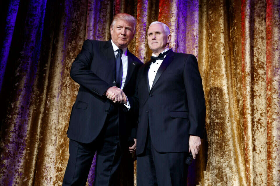 סגן הנשיא המיועד, מייק פנס, הציג את טראמפ לאורחים וסיפר כיצד הוא עדיין נרגש מהטלפון שקיבל מטראמפ בקיץ, שבו נודע לו כי בחר בו להיות שותפו למירוץ – ולמעשה לארבע או לשמונה השנים הבאות.