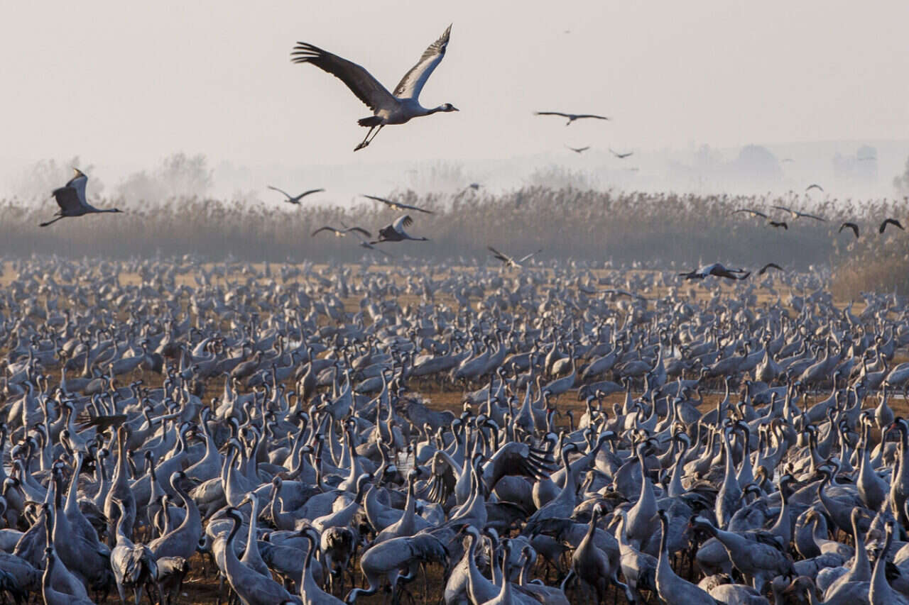 מספר שיא של כ־41 אלף עגורים נספר אתמול באגמון המפורסם • העופות המרשימים נוהגים להגיע באוקטובר ולנדוד לאירופה במארס