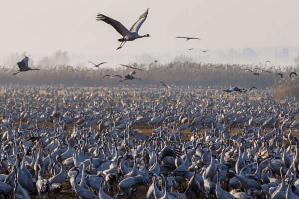 מספר שיא של כ־41 אלף עגורים נספר אתמול באגמון המפורסם • העופות המרשימים נוהגים להגיע באוקטובר ולנדוד לאירופה במארס