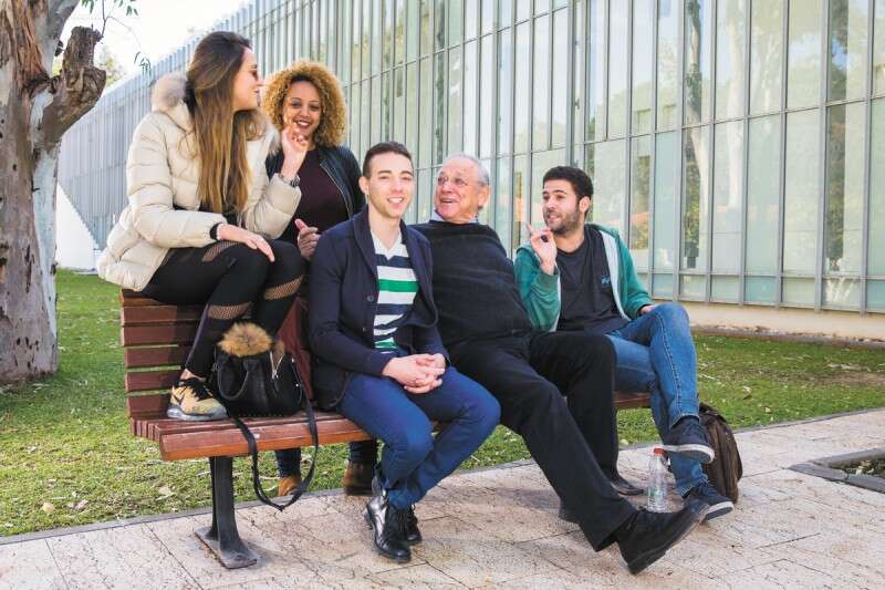 עם סטודנטים במרכז הבינתחומי. "אני אוהב לעמוד איתם בקפטריה בתור לאוכל, עם המגש, להרגיש חלק מהם" // צילום: יהושע יוסף
