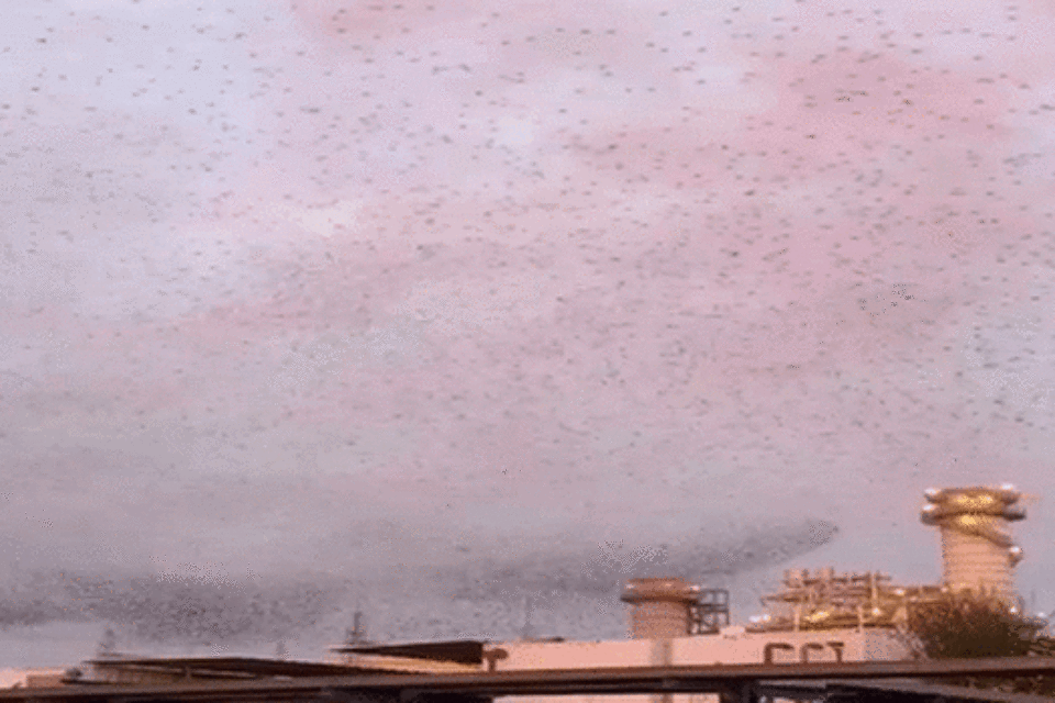 להקת זרזירים מצאה את מנוחתה אמש (חמישי) מעל תחנת הכוח רמת חובב של חברת החשמל, וסיפקה לנוכחים במקום ולצופים מרחוק מופע מרהיב בין מתקני התחנה.