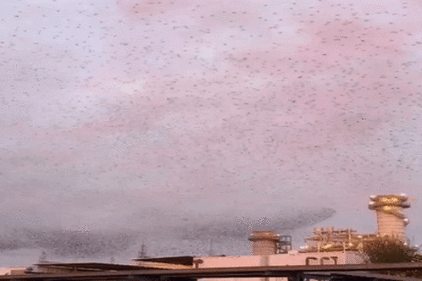להקת זרזירים מצאה את מנוחתה אמש (חמישי) מעל תחנת הכוח רמת חובב של חברת החשמל, וסיפקה לנוכחים במקום ולצופים מרחוק מופע מרהיב בין מתקני התחנה.