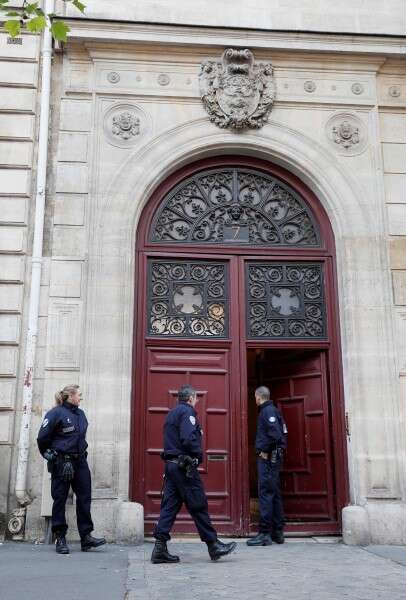 השודדים נמלטו ברגל ובאופניים. שוטרים בכניסה למלון בו נשדדה קרדישיאן // צילום: אי.אף.פי