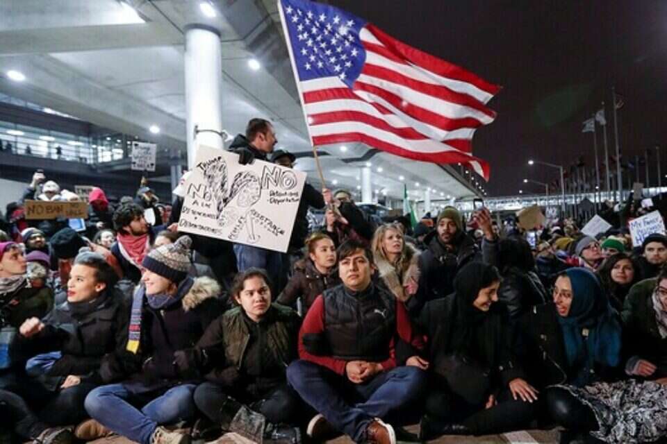 הצו הנשיאותי, שיישומו החל כבר בשבת והביא לעיכובם של בין 100 ל־200 נוסעים בשדות תעופה ברחבי ארה"ב, הוציא אלפי אמריקנים להפגנות בנמלי התעופה השונים. כן דווח בסוכנות הידיעות רויטרס כי תובעים כלליים מ־16 מדינות בארה"ב, ובהן קליפורניה, ניו יורק ופנסילבניה, הוציאו גינוי משותף לצו של טראמפ.