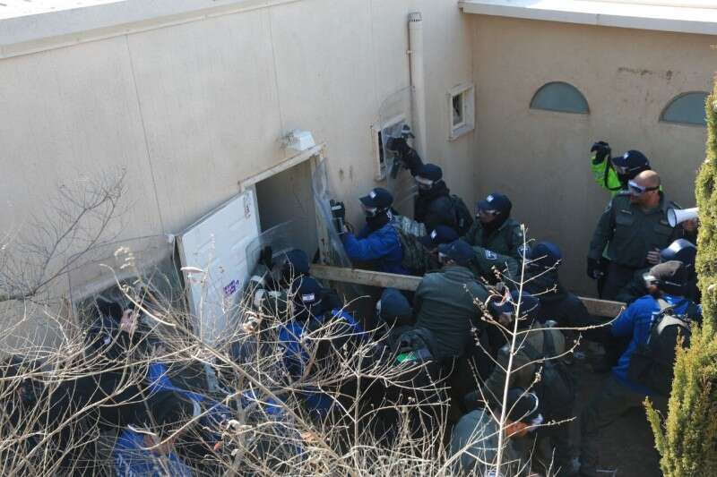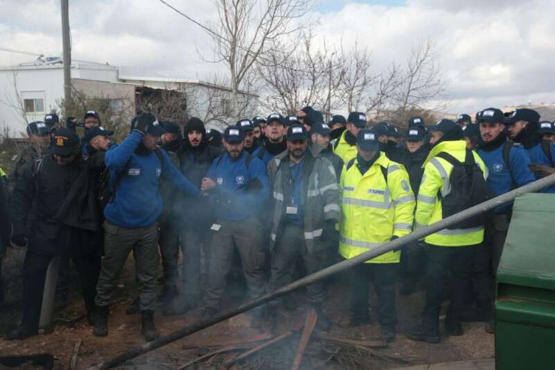 כוחות משטרה פועלים לפתוח את המבנים הנצורים // צילום: אפרת פורשר