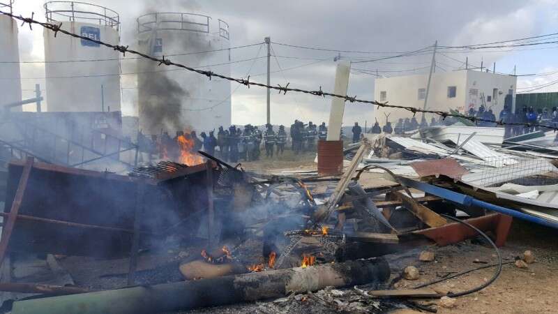 במהלך ניסיונות הכניסה למתחם הושלכו לעבר השוטרים אבנים, מטפי כיבוי, בקבוקי צבע, קרשים ואמצעים נוספים שהוכנו מבעוד מועד על מנת לפגוע בשוטרים ולמנוע את מהלך הפינוי.