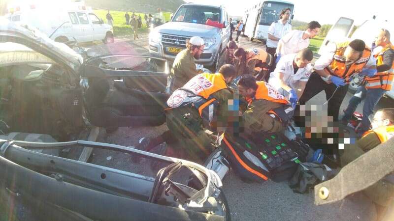 עוד סיפר החובש הבכיר כי "בסיוע עוברי אורח הוצאנו את הפצועים מהרכבים. ברכב הפרטי נסעו גבר ואישה בשנות ה-50, הם היו מחוסרי הכרה עם פגיעה רב מערכתית ובסמוך לרכב ההסעות שני גברים כבני 40 מחוסרי הכרה עם פגיעה רב מערכתית. בזירה היו פצועים נוספים כשהם בהכרה וסובלים מפגיעות שונות".