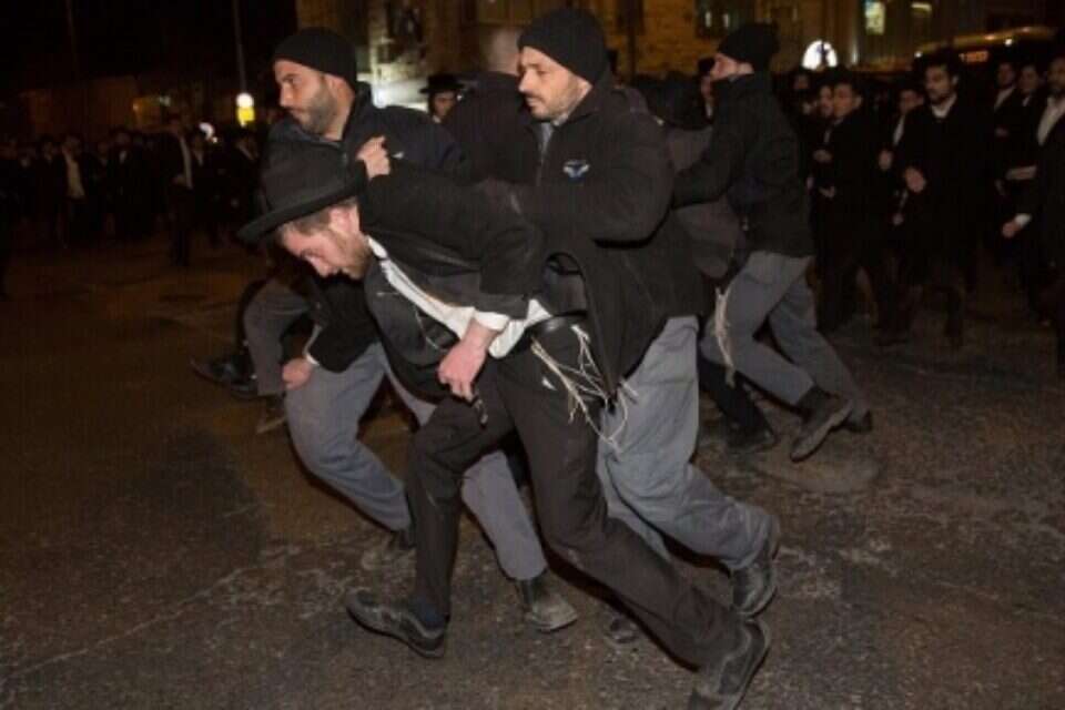 The impassioned demonstrations by a group of haredim known as the "Jerusalem Branch" stretched into a second day on Wednesday, as the group expressed its fury over the arrest of a draft-dodging yeshiva student and Defense Minister Avigdor Lieberman's statement Wednesday that he had issued instructions to look into the sanctioning haredim who refuse to enlist. Lieberman said he wanted to examine both the possibility of stopping the draft deferral arrangement and the flow of budget funds to the Maalot Hatorah and Grodno yeshivas, both of which are under the directorship of Rabbi Shmuel Auerbach.