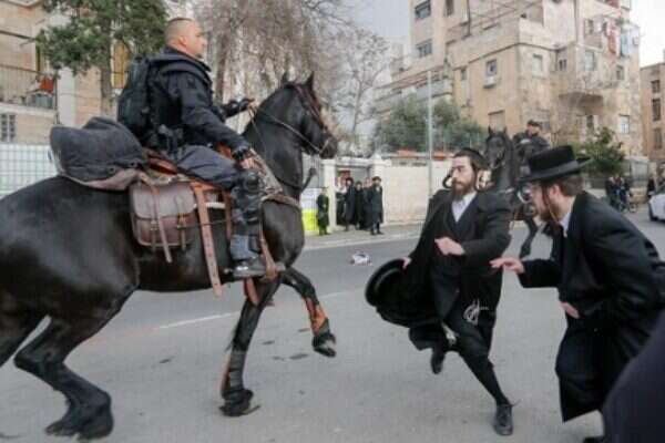 Hundreds of ultra-Orthodox men took to the streets for the third night in a row Thursday to protest the arrest of a draft-dodging yeshiva student. Protesters succeeded in blocking access to Bar-Ilan Junction in Jerusalem and the centrally located Rabbi Akiva Street in Bnei Brak. Traffic jams were reported in both cities as a result. In total, around 30 protesters were arrested by the end of the night. Police employed water cannons and mounted officers to disperse the protesters who had massed in the streets against orders. Officials stressed that the protests are illegal and warned they would not hesitate to use force against protesters. On Wednesday, haredi youths in Bnei Brak threw stones at a newly discharged haredi solider after recognizing him from pamphlets distributed in the city's haredi neighborhoods. In a video of the incident taken by the soldier, he flees to a nearby building and hides from the angry mob. It was there that he alerted police to the attack. Although the government generally does not enforce the ultra-Orthodox draft, protesters belonging to the Jerusalem Faction, a small extremist group led by Rabbi Shmuel Auerbach, have fought publicly against the draft. Auerbach has instructed his disciples to disobey draft orders and not show up at IDF induction centers, leading to the deserters' arrests. On Thursday, Hapeles, the haredi newspaper aligned with the Jerusalem Faction, published a quasi-religious decree calling for the continued struggle against the draft. "All those engaged in the capture of souls have removed themselves from the haredi [community], and should be warned against and publicly shamed," the newspaper said. Ultra-Orthodox lawmakers spoke out publicly against the protests on Friday. In an interview with haredi news site Kikar Shabbat, Interior Minister and Shas party leader Aryeh Deri said, "This is blasphemy. I denounce and condemn these grave acts." Deri emphasized, "This is a small minority that does not represent haredi society." United Torah Judaism MK Yakov Asher told haredi radio station Kol Barama, "The vast majority of the haredi public is not there. This is not our way, and we have no part in it."