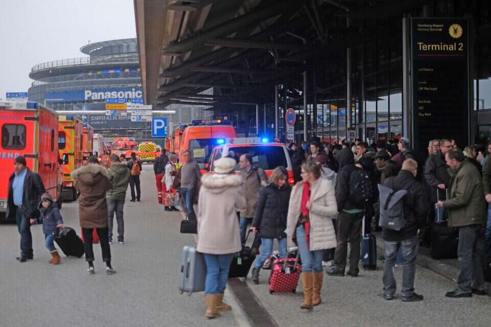 כבאים גרמנים מפנים מאות נוסעים בשדה התעופה של המבורג אחרי ש-50 בני אדם נפגעו היום (ראשון) מחומר רעיל בלתי מזוהה שככל הנראה רוסס לתוך מערכת מיזוג האוויר של נמל התעופה.