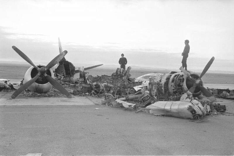 שרידי מטוס תובלה מיצרי שנפגע ב''מבצע מוקד'' בסיני או באל – עריש או בביר גפגפה // באדיבות ארכיון צה''ל במשרד הביטחון, מדור לתולדות חיל האוויר