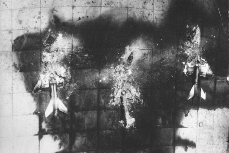 מטוסי האויב שהושמדו על הקרקע. צילום אוויר // צילום: באדיבות ארכיון צה''ל במשרד הביטחון, גרשון גרא - פיקוד דרום