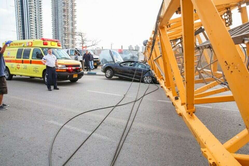 זה שוב קרה - ובנס לא נגמר כאסון רב נפגעים: עגורן קרס על כביש בבת ים, קבר תחתיו כלי רכב וגרם לפציעתם של ארבעה • מנהל אתר הבנייה ומנהל החברה המפעילה את המנוף נחקרו בחשד לרשלנות