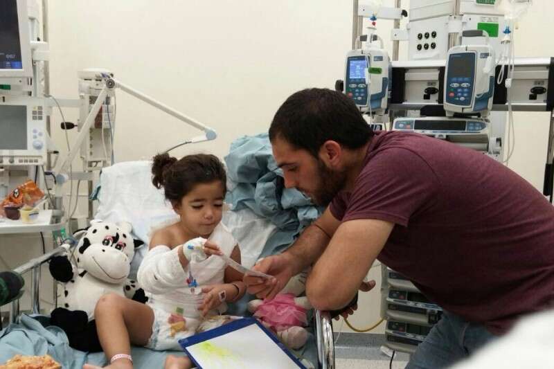 אביב מבקר את אחותו תהל בביה"ח לאחר שנפצעה בפיגוע ב־2015 // צילום: באדיבות המשפחה
