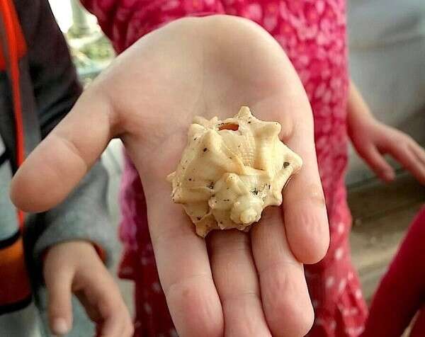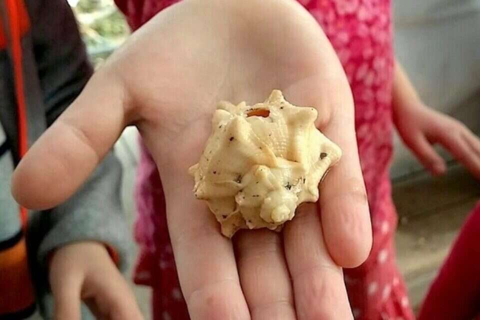 הקונכייה התגלתה על ידי בני משפחת סינגר מירושלים, שהגיעו ל"חוויה הארכיאולגית" במקום. הארכיאולוג צחי דבירה ציין כי ממצא זה מעורר תמיהה, כיוון שממצאים מסוג זה מתגלים בעיקר באתרים חופיים ולא באתרי ההר. דבירה אמר: "חלזונות אלו שימשו לתעשיית צבע יוקרתי בעת העתיקה, והופק מהם צבע הארגמן וצבע התכלת. מתקני תעשייה עם שברי קונכיות כאלו נתגלו באתרים פניקים לאורך החוף של הים התיכון, ובארץ מוכר מתקן כזה בעיקר מתל דור".