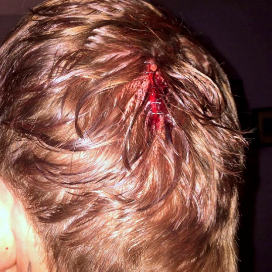 רבל רץ לעבר כוכב הריאליטי מאחור, ניפץ את הבקבוק על ראשו, חבט בו וגרר אותו.