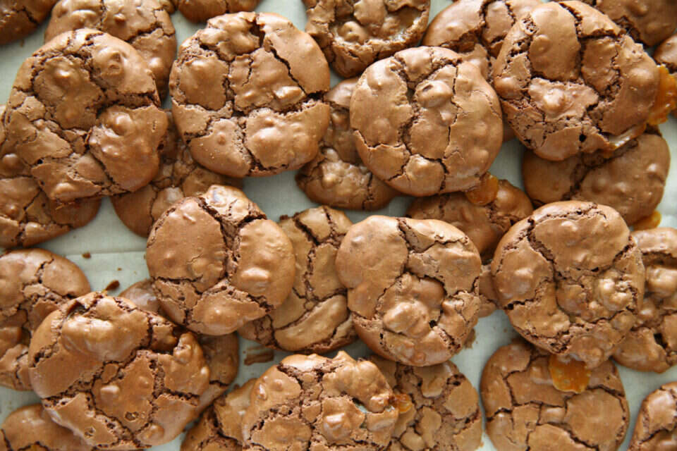 6. אופים בתנור בחום בינוני, 180 מעלות במשך כ8 דקות עד שפני העוגיות הופך סדוק ומבריק.