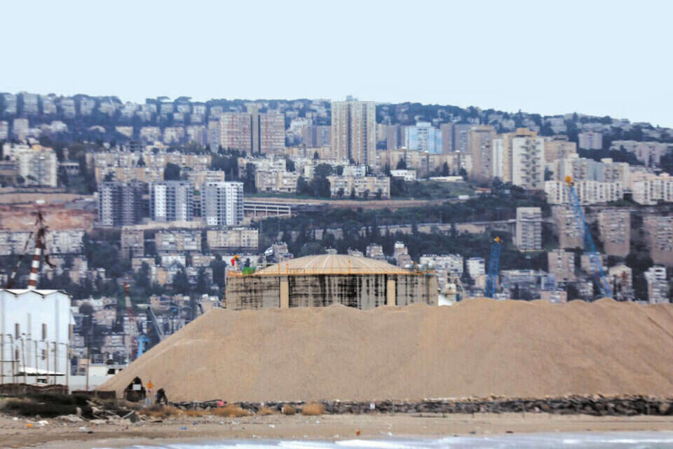 "לפני שבועיים הופיע באמצע הים כתם נפט ענק". בנייני מגורים סמוכים למיכל האמוניה // צילום: גדעון מרקוביץ'