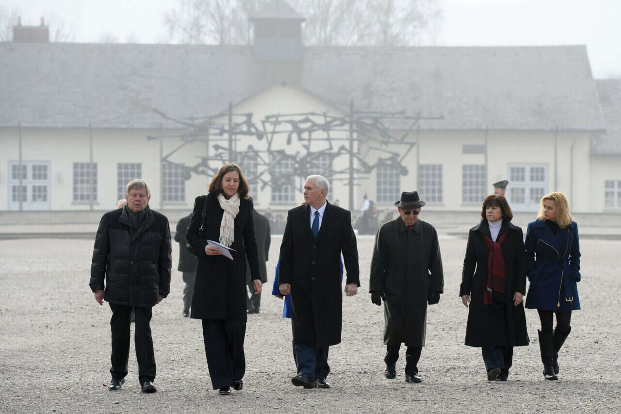 סגן הנשיא האמריקני מייק פנס ביקר היום (ראשון) עם רעייתו ובתו במחנה הריכוז דכאו הסמוך למינכן, גרמניה. את פניהם קיבל קארל פרלר, מנהל קרן אתרי ההנצחה בבוואריה, וניצול השואה אבא נאור, יהודי ממוצא ליטאי המתגורר כיום בישראל.