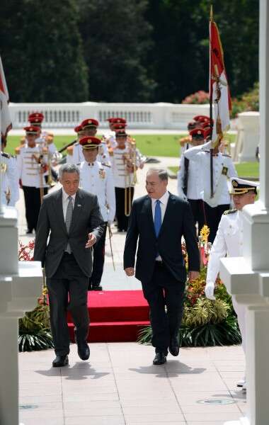 ראש הממשלה בנימין נתניהו נחת בסינגפור ובפעם הראשונה התנגנה התקווה בטקס קבלת פנים בארמון הנשיאות איסטנה. ראש הממשלה, מלווה ברעייתו שרה, התקבל בטקס מרשים כשתזמורת צבאית ניגנה את שני ההמנונים.