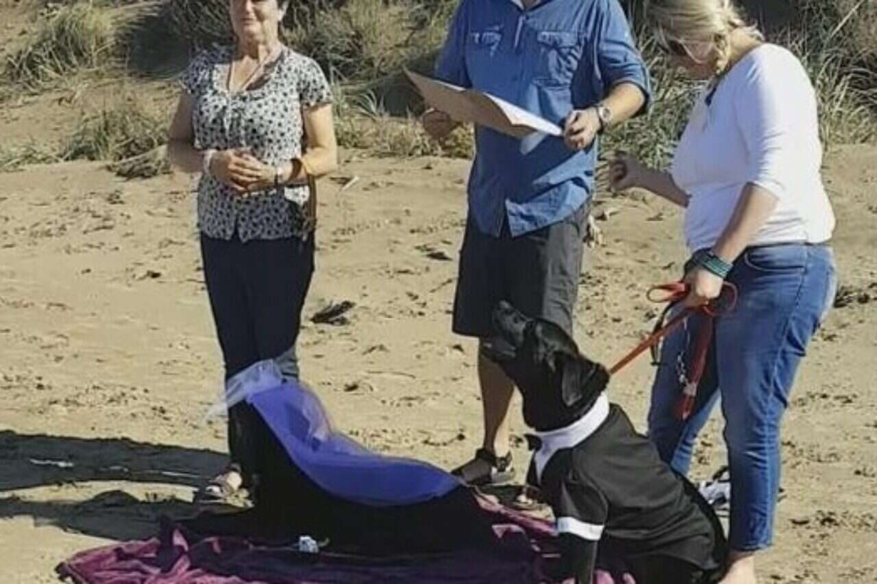 ההחלטה על השידוך נתקבלה, מועד החתונה נקבע והטקס נערך בחוף הים, סמוך למקום מגוריה של משפחת לאבלס. לטקס הוזמנו מספר חברים ותיקים, חלקם על שתיים וחלקם על ארבע. לאירוע הוזמנה עוגה המתאימה למאכל כלבים והחתן והכלה הולבשו בהתאם. וולינגטון קיבל חליפת טוקסידו שהוזמנה, איך לא, ברשת לצד פרח לדש הבגד. הכלה הופיעה בהינומה לבנה ומחורזת יהלומי פלסטיק יוקרתית.