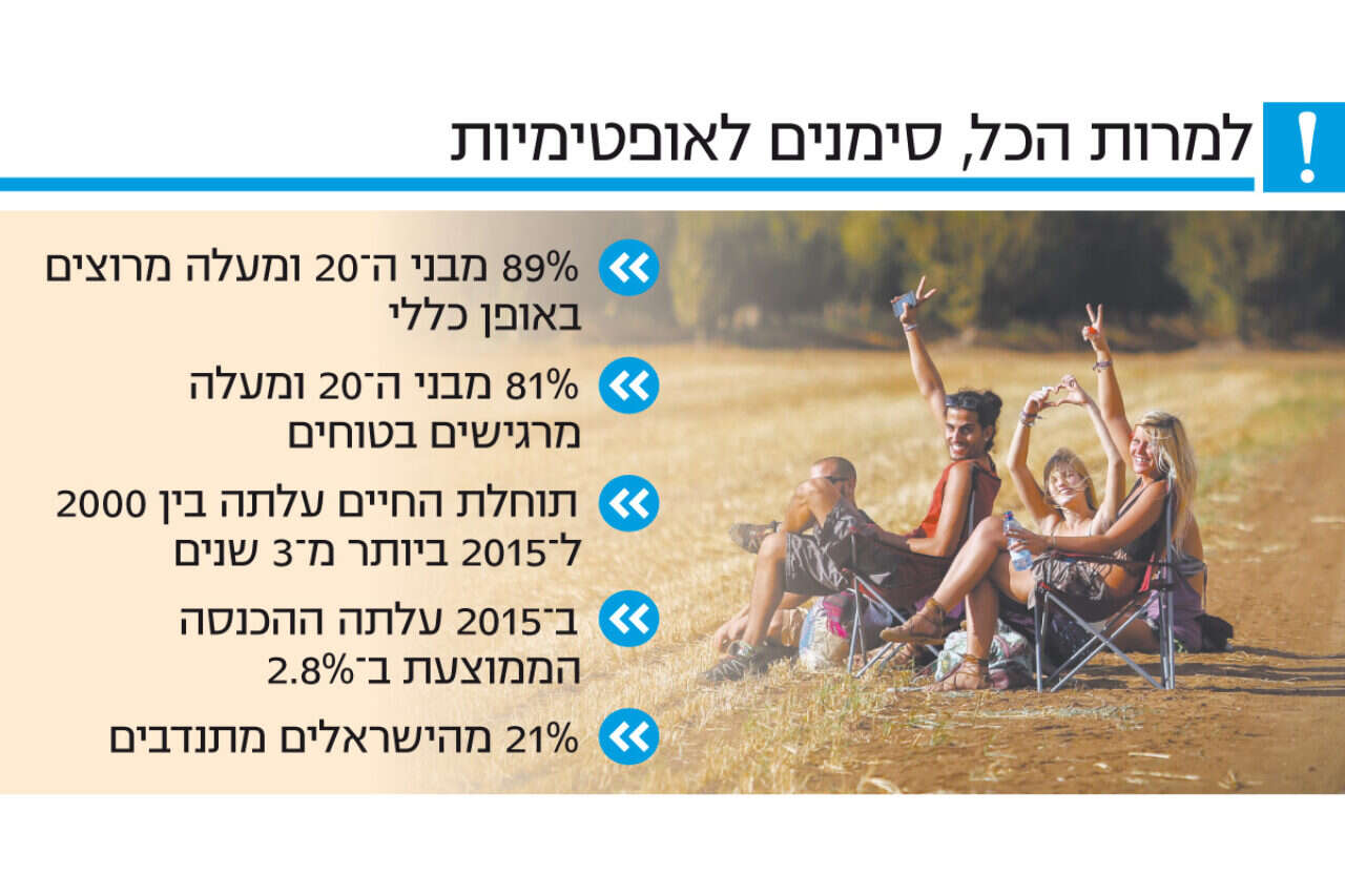 מה מצב איכות חייהם של תושבי ישראל? הלשכה המרכזית לסטטיסטיקה פירסמה אתמול את התשובות, שמהן עולה כי 89% מהישראלים בני ה־20 ומעלה מרוצים מחייהם (91% בקרב אוכלוסיית היהודים והאחרים, לעומת 82% מהאוכלוסייה הערבית).