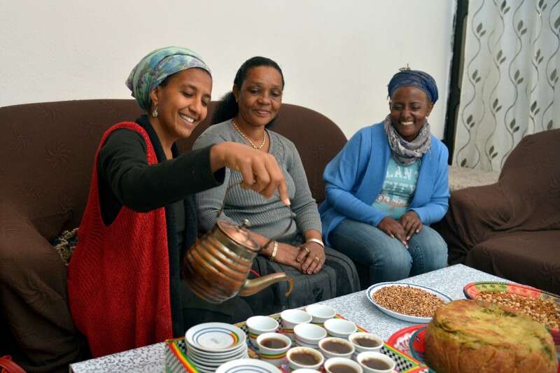 בהמשך, דרך האוכל האתיופי, מדברים פה על יהדות אתיופיה, המורשת שלה והמנהגים שלה. עורכים טקס קפה מסורתי הקרוי "בונה", טועמים מאכלים מהמטבח האתיופי, שטעמיו עזים ואקזוטיים, חריפים במידה ומלווים בפיתה חמצמצה, האינג'רה, העשויה מטף - דגן נטול גלוטן ובריא. אפשר לשלב בחוויה גם ביקור בגינה הקהילתית, שבה מגדלת ישראלה עם חברים נוספים בקהילה גידולים שונים, כמו עשבי תיבול וירקות. לדבריה, בשנה שעברה היא אפילו הצליחה לגדל טף.
