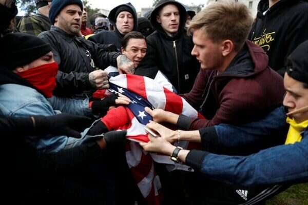 אחד מתומכי טראמפ שלקח חלק בעימותים האלימים הגיע למקום כשהוא מצויד באלה, מסכת גז ומגן ועליו ציור דגל ארה"ב. בברקלי, בה שוכנת אוניברסיטת קליפורניה, בוטלה בחודש שעבר התכנסות של פעילי ימין קיצוני אחרי שהפגנות קשות פרצו במקום שהציתו דליקות וניפצו חלונות ראווה. גם במדינת מינסוטה נרשמו תקריות אלימות בין הצדדים, ושישה מפגינים נעצרו. בנשוויל, טנסי, אירעו עימותים דומים עד להגעת כוחות המשטרה שפיזרו את המפגינים.