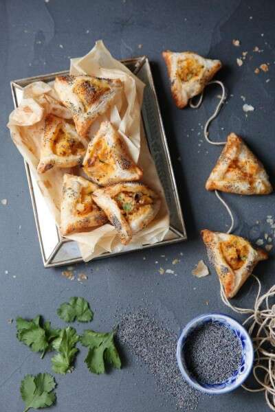 8. אופים בשליש התחתון של התנור בחום של 200 מעלות במשך כ־7 דקות, עד שהמאפה מזהיב מכל הכיוונים.