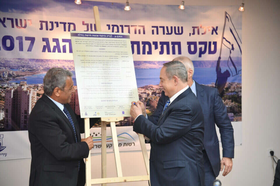 ההסכם נחתם אמש בהשתתפות ראש הממשלה בנימין נתניהו, שר האוצר משה כחלון, שר הבינוי והשיכון יואב גלנט, מנהל מרחב דרום ברשות מקרקעי ישראל ערן ראובני וראש העירייה מאיר יצחק הלוי. במעמד הטקס העניק הלוי את מפתח העיר לראש הממשלה ואת מפתח חופי אילת לשר האוצר.