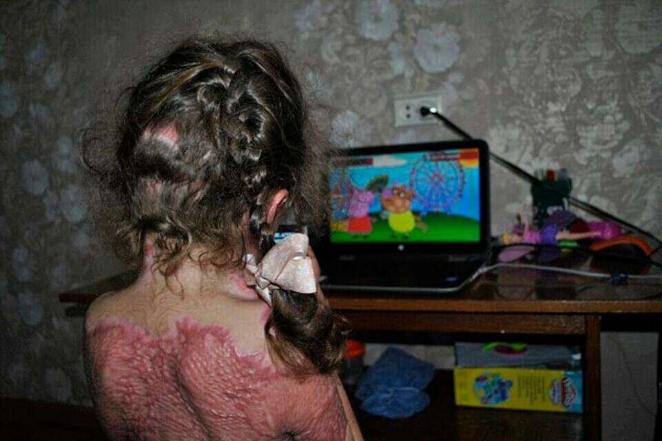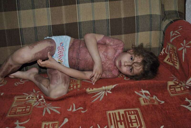 סופיה אז'ובה בת החמש, שנכוותה באורח קשה לאחר שהפעילה את מכשיר הגז כחל מ"המשחק" // צילום: מתוך פייסבוק