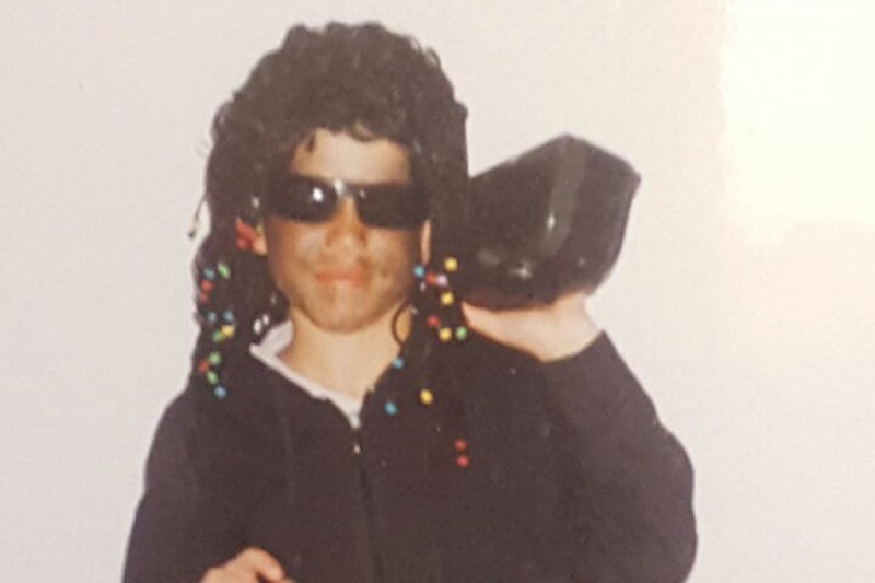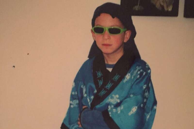 "כבר מגיל צעיר נורא הערצתי את ג'ניפר לופז. בתמונה הזאת אני מחופש אליה כשאני בערך בן 9. זה בדיוק היה בתקופה שבה יצא הקליפ שלה My love don't cost a thing, ואני ניסיתי להעתיק את מה שראיתי שם אינספור פעמים. התחפושת לא יצאה לי כזאת דומה אליה; שמתי חלוק שקניתי בתאילנד וכפכפים שלקחתי מאחותי. כולם נורא צחקו ופירגנו. זאת אינטרפרטציה מאוד מעניינת של לופז, שאין לה שום קשר למציאות, אבל עפתי על זה ברמות הכי קשות. הייתי מסתובב עם התחפושת ורוקד ושר וכולי בטירוף. מבחינתי הייתי ג'יי לו".