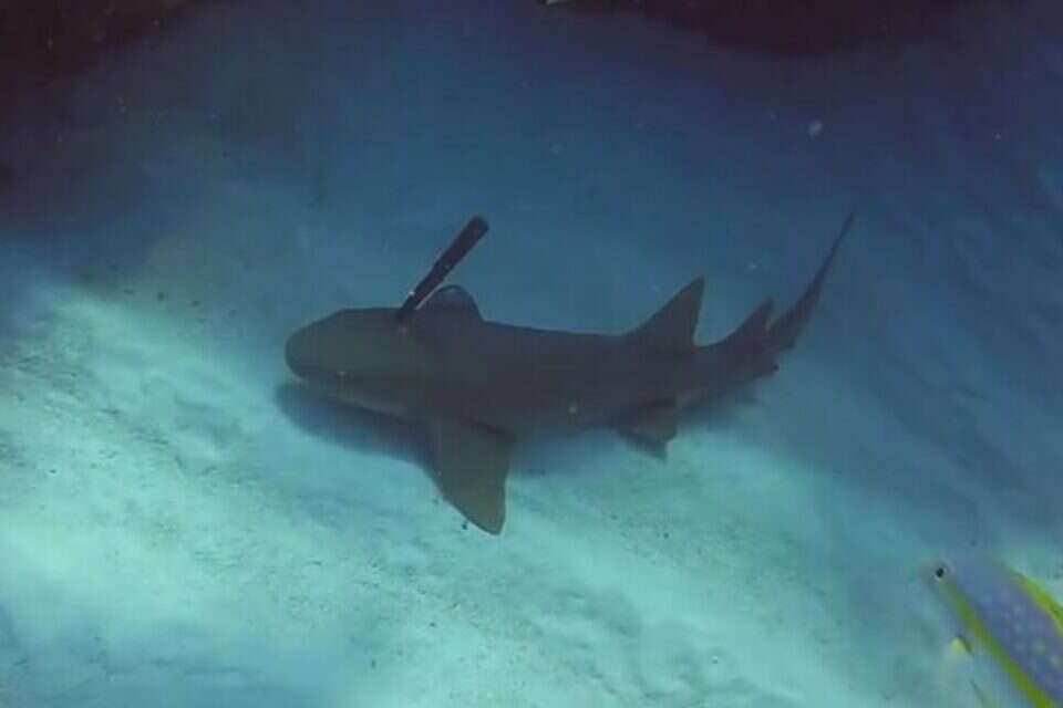 "הכריש שחה לידי ונעצר מתחתיי, כאילו הוא מבקש עזרה. ראיתי שיש לו סכין באורך 11 ס"מ שננעצה בראש שלו", המשיך ג'ונסון לתאר את המפגש בין הדג, שתועד בסרטון וידיאו שהועלה לפייסבוק וצבר יותר מ-80 אלף צפיות בפחות משבוע. המדריך התקרב אל הדג, ושלף ממצחו את הסכין שנתקעה, ושחרר את הדג לחופשי. "התיירים שהיו אתי היו בהלם", סיכם ג'ונסון.
