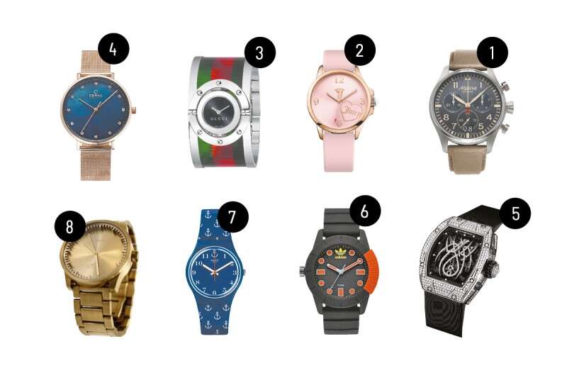 1. אלפינה, מחוג וייס 4,195 ש', 2. ג'ויסי קוטור, 750 ש', 3. גוצ'י, אימפרס 4,975 ש', 4. אובקו, אימפרס 955 ש', 5. ריצ'רד מיל, תכשיטי JB החל מ־500,000 ש', 6. אדידס, 549 ש', 7. סווטש, 289 ש', 8. Piet Hein Eek, הביטאט, 1,450 ש'
