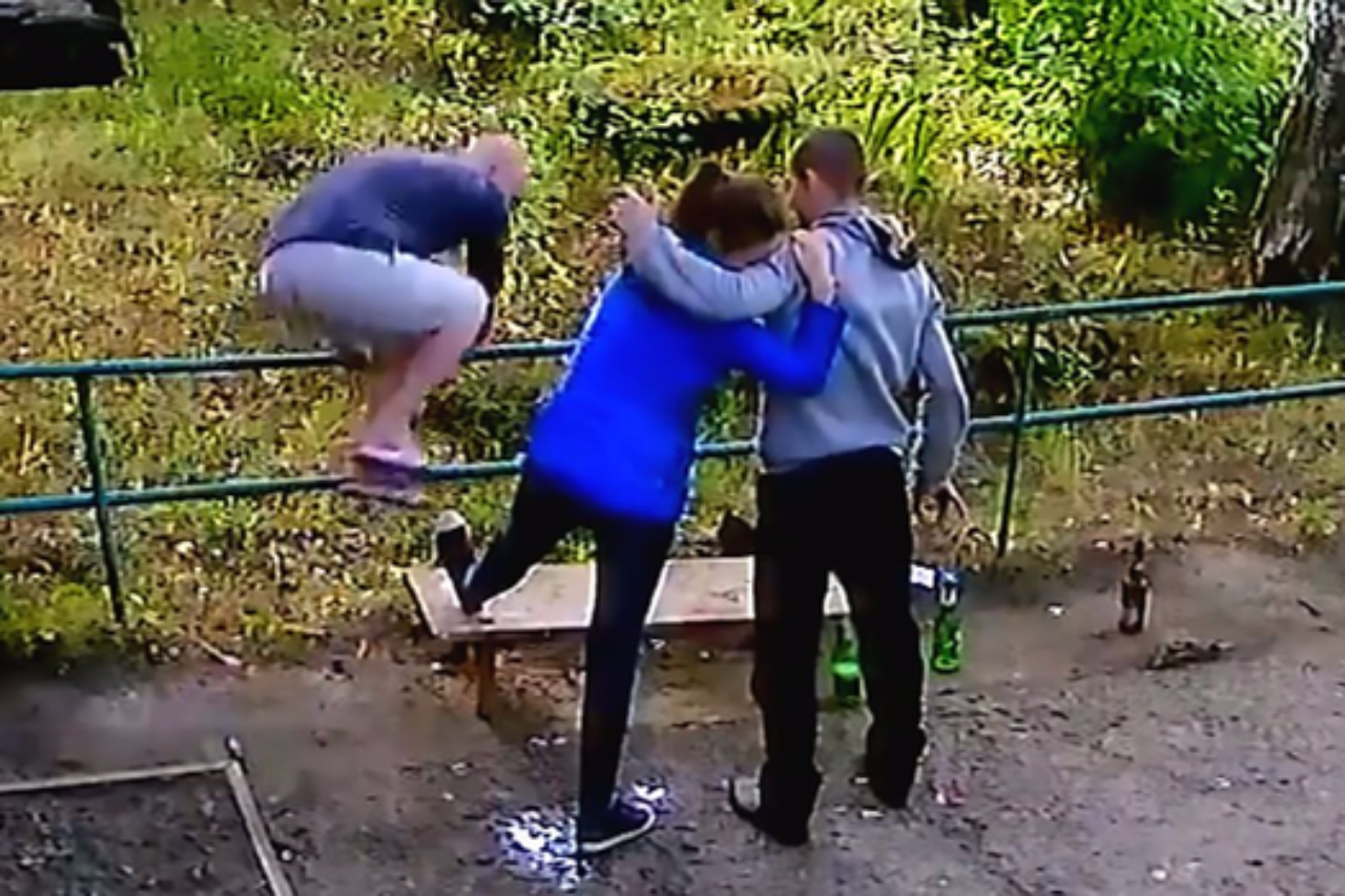 האישה הצעירה בחבורה העליזה והשיכורה הצליחה, כך זה נראה, לשכנע את שני חבריה לקפוץ על רגלה ולשבור אותה, אחרי שישבו כנראה יותר מדי זמן על ספסל ציבורי. השניים בחנו את בקשתה, ומה להגיד, חשבו שזה רעיון מצוין.