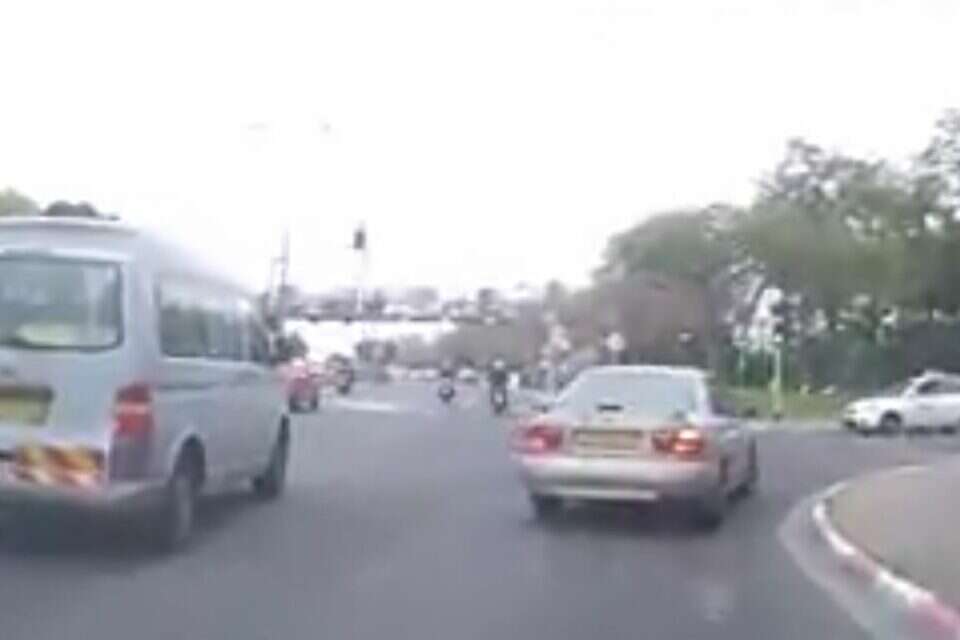 רוכב אופניים חשמליים ניצל בנס ברמת גן, כאשר בחר לחצות צומת באופן מסוכן סנטימטרים ספורים מרכב הנוסע.