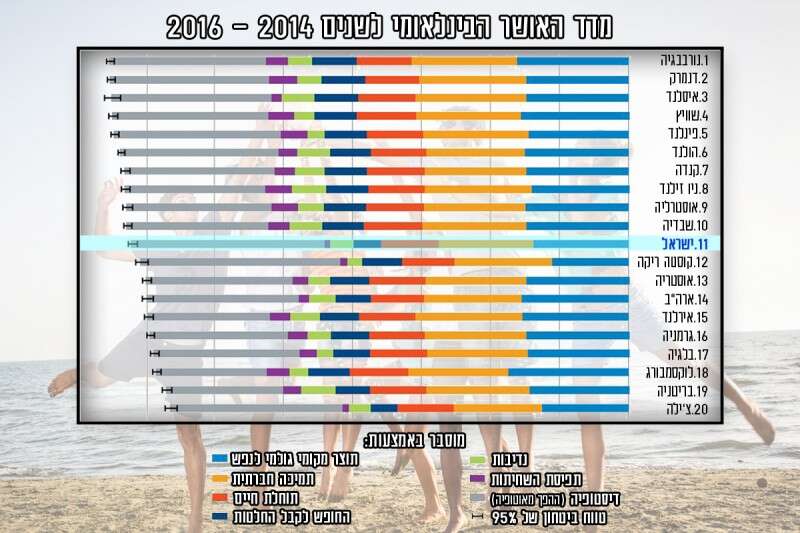 הדו"ח מלמד כי בצמרת המדינות המאושרות נמצאת נורבגיה ואחריה דנמרק, איסלנד, שוויץ ופינלנד. את העשירייה הראשונה סוגרות ניו-זילנד (מקום 8), אוסטרליה ושבדיה. ישראל כאמור לפי הטבלה במקום אחד מתחת לשבדיה.