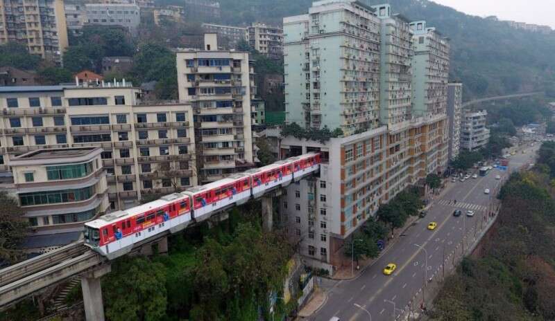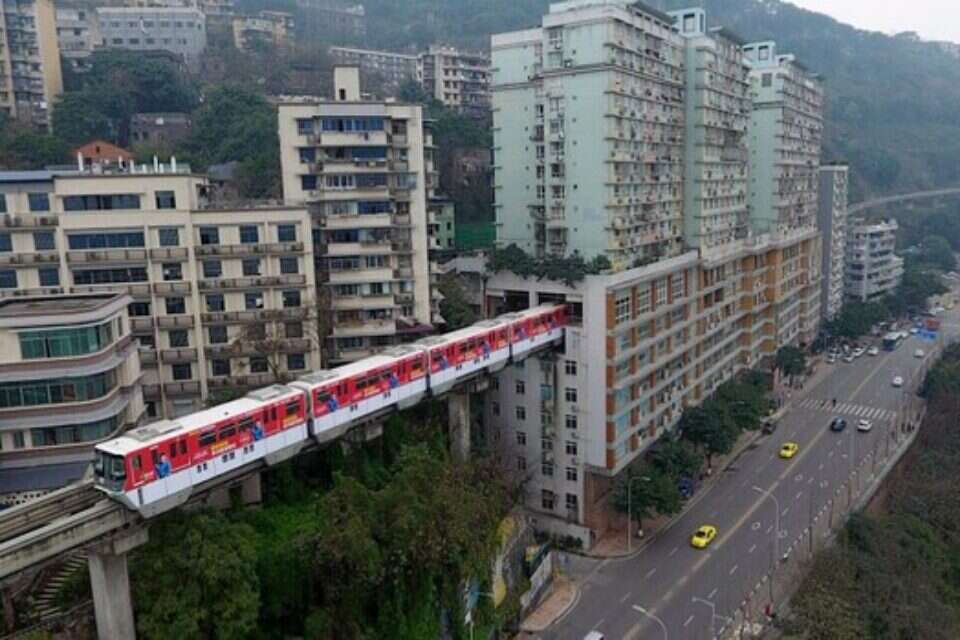מה עושים כשיש אוכלוסיה של 49 מיליון איש בשטח של פחות מ-50 אלף קילומטרים רבועים? בעיר צ'ונגקינג בדרום מזרח סין, מצאו פתרון מקורי לצפיפות האוכלוסין הקשה ולצורך בתחבורה ציבורית נוחה. כשמתכנני התחבורה בעיר רצו לבנות מסילת רכבת, התכנון עבר דרך בית מגורים בן 19 קומות. במקום להרוס את הבניין, הם פשוט בנו את המסילה בתוכו, בין הקומה השישית לשמינית.