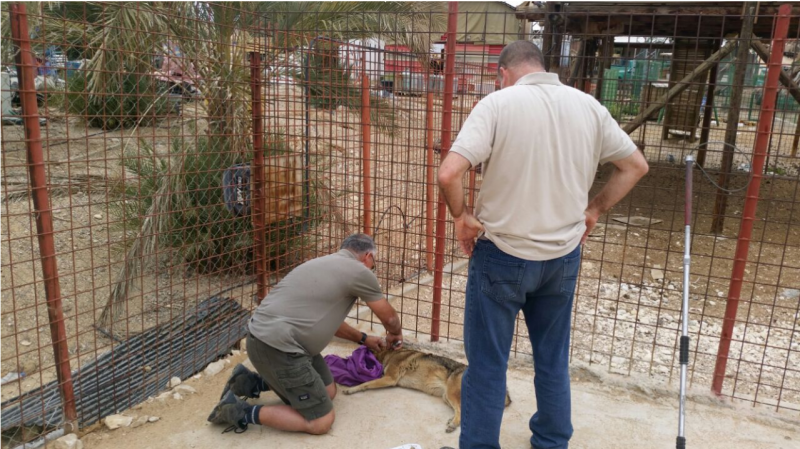 עובדי רט"ג מטפלים בכלב בפינת החי // צילום: יניב כהן, רט״ג