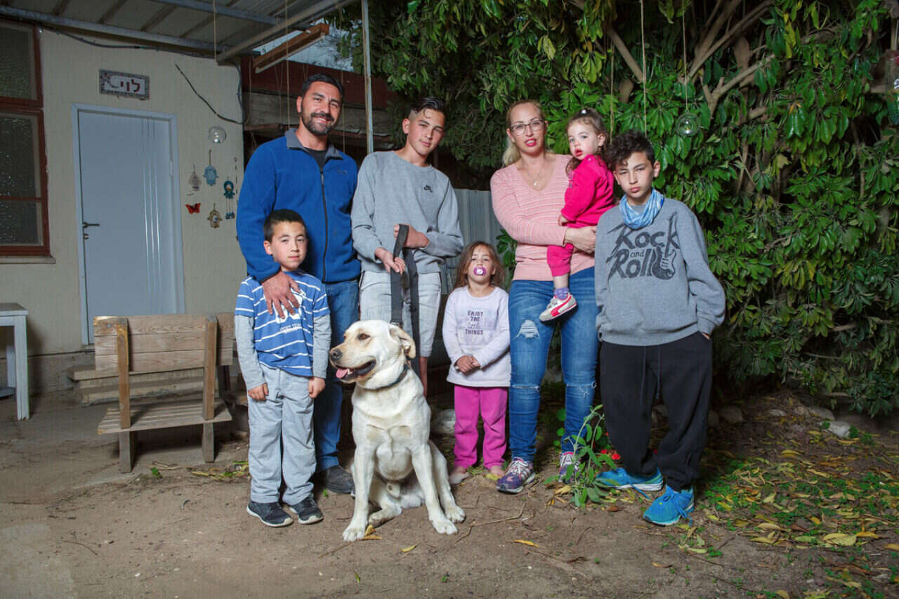 בבית החם והצנוע שלהם חצר גדולה, ובה מגלשה צהובה מעל בית גדול מפלסטיק, טרמפולינה גדולה ונדנדות. בן מסתובב יחף בגינה, ולידו החתול המשפחתי, כתם. גם בבתים הסמוכים, מוקפי הגינות, גרות משפחות עם ילדים, שהיום הם החברים הכי טובים של בן ושי־לי. "אני מרגישה כאן כאילו יצאנו עם חברים לנופש במתחם צימרים", סמדר צוחקת.