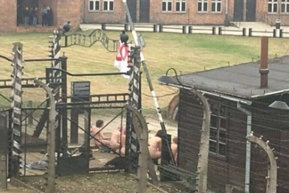 A group of 11 people took off their clothes, killed a sheep and chained themselves together by the main gate of the former Nazi German death camp of Auschwitz in Poland before being detained by police. The memorial was temporarily shut down during the incident, but operations resumed shortly thereafter. Bartosz Bartyzel, a spokesman for the Auschwitz memorial, said their motives were not clear as they briefly stood by the notorious "Arbeit macht frei" ("Work sets you free") gate on Friday afternoon. Bartyzel said museum guards ordered them to dress and called the police. Visits to the site were temporarily suspended. A statement by the Auschwitz memorial's authorities said that "using the symbols of Auschwitz for any manifestations or happenings is reprehensible and outrageous" and "hurts the memory of all victims" of Auschwitz. Malgorzata Jurecka, a spokeswoman for the local police, said 11 young people -- Poles, Belarusians and a German -- were detained for questioning on allegations that they insulted a memorial site. If convicted, they could face hefty fines.