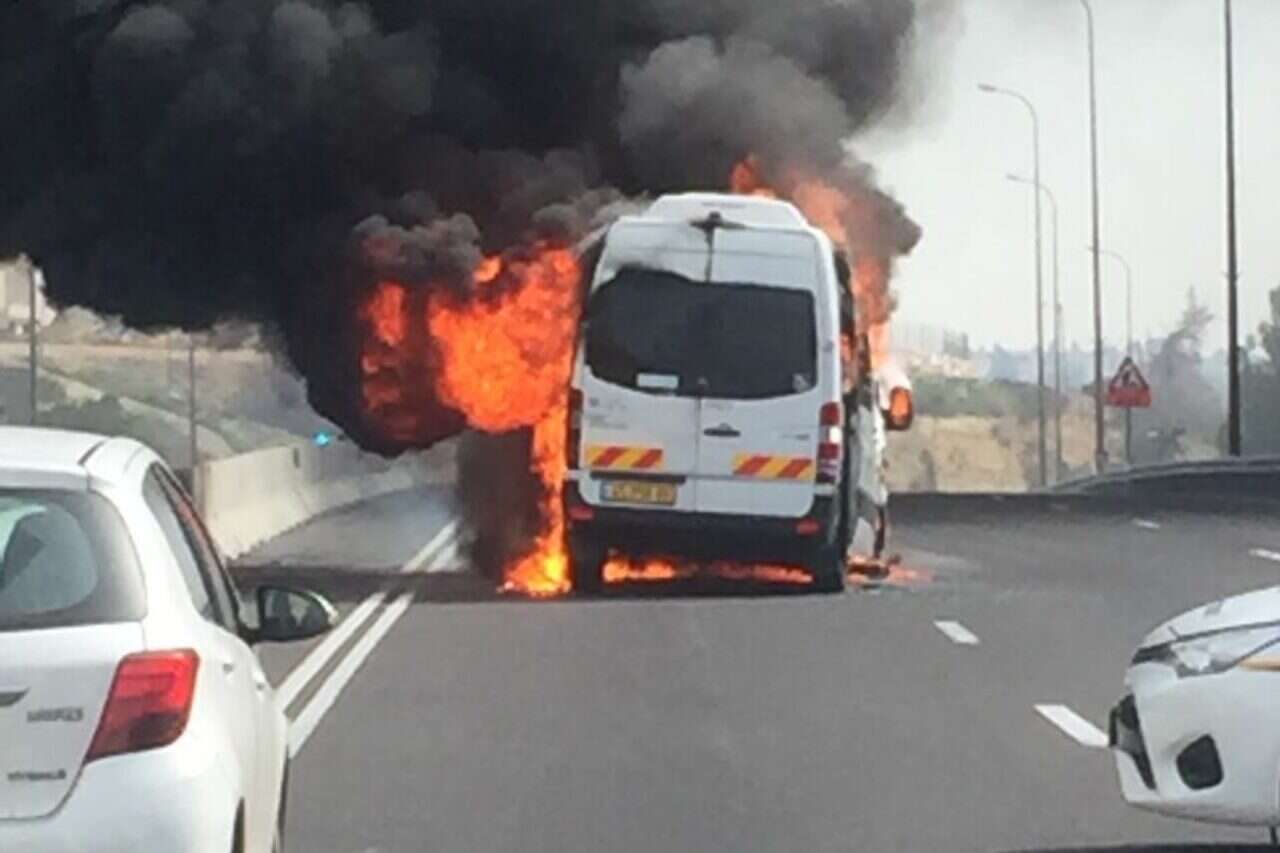 רכב ההסעות שעלה באש // צילום: דוברות המשטרה // רכב ההסעות שעלה באש // צילום: דוברות המשטרה