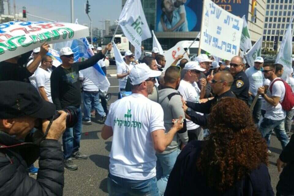 עובדי חיפה כימיקלים חוסמים את צומת עזיראלי // צילום: גיל קרמר