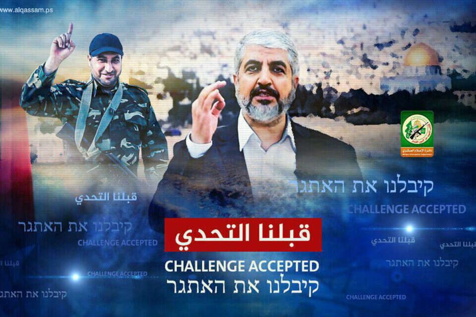 בד בבד, חמאס פירסם אתמול כרזה עם הכיתוב בעברית ''קיבלנו את האתגר'' מתחת לתמונתו של חאלד משעל, ראש הלשכה המדינית של חמאס, שהתבטא באופן דומה שלשום. אתמול גם איימו גורמים בחמאס כי "הנקמה בישראל תגיע בקרוב". מאז מבצע צוק איתן ממשיך חמאס להתעצם, ועיקר ההתעצמות שלו בנשק תלול־מסלול נעשה בפיתוח עצמי ברצועה, בשל הקושי של הארגון להבריח אמצעי לחימה תקניים לתוך עזה.