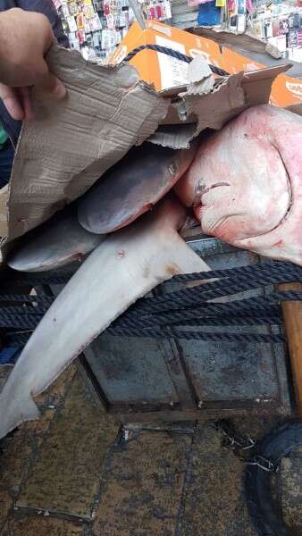 השוטרים ולוחמי מג"ב עצרו אותו לבדיקה וכשביקשו ממנו להסיר הקרטונים מעל העגלה גילו לתדהמתם ארבעה כרישים אותם הוביל ככל הנראה לשוק.
